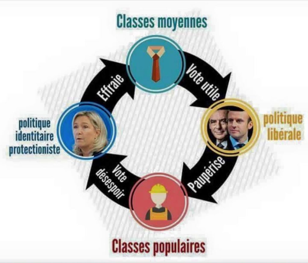 Je ne suis pas dupe non plus, Mélench n'aurait pas fait le quart de la moitié de son programme. Sortir du nucléaire ? En 5 ans ? nos réacteurs on en a pour 1 000 ans. Construire une autre Europe ou en sortir ? C'est le fric qui dicte les lois. Développer les énergie renouvelables ? Avec des matières qui viennent du monde entier en exploitant les pays pauvres ? Réduire le chômage... Mais bien sûr ! Mélenchon aurait amené un nouveau souffle, il aurai permis d'envisager d'autres possibles. Cela aurait donné un nouvel élan aux jeunes générations. De toute façon les peuples européens ne sont pas près à lâcher leurs petits conforts, moi le premier. J'ai une voiture, une moto, un ordi, je suis un salop de pollueur qui exploite de part mon mode de vie des gens à l'autre bout de la planète. Pourtant j'ai le choix de ne pas vivre comme cela, de prendre des douches moins chaudes pour le bien être de la planète, de ne plus prendre l'avion pour passer une semaine au Maroc, de ne pas racheter un ordi car le mien se fait vieux. Tout ça c'est une histoire de choix, mais surtout de renoncements. Donc j'ai choisi Mélenchon pour le premier tour, mais je renoncerai à mes valeurs lors du second tour pour voter Macron. Edit : @Dimebagou Oui comme tu le dis ils viennent du FN, donc en fait ils y retournent.