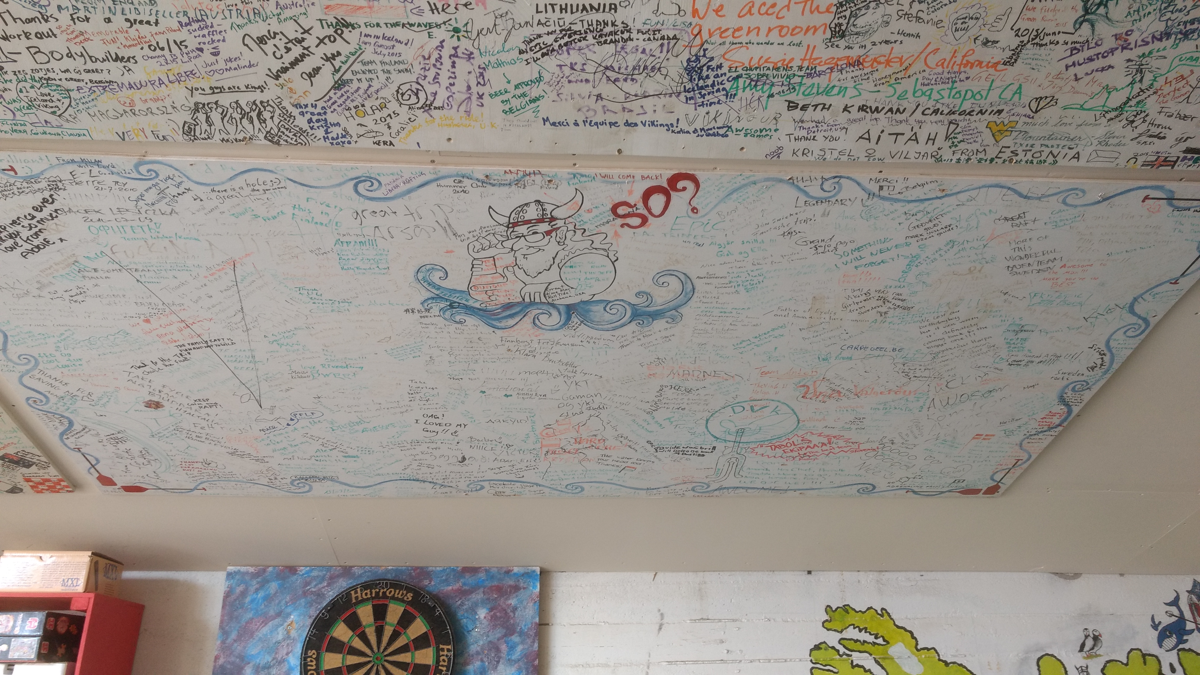 Nous sommes actuellement en Islande avec @Guraz, @Pamplemousse et deux autres potes. On s'est fait un petit peu de rafting aujourd'hui et il y avait des grand panneaux pour laisser un petit message. Ils sont ensuite affichés au plafond en fin de saison. Ça ressemble à ça en gros : ![]() ![]() On a laissé une petite dédicace : ![]() ![]() Si vous passez un jour à Viking Rafting, vous croiserez peut-être notre petite dédicace ![]()