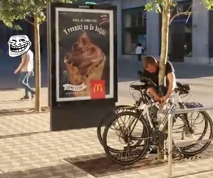 Bah quoi c'est juste un mauvais malentendu c'est un bon samaritain qui veux s'assurer que nos vélos sont involable, il nous en faudrait plus des comme ça