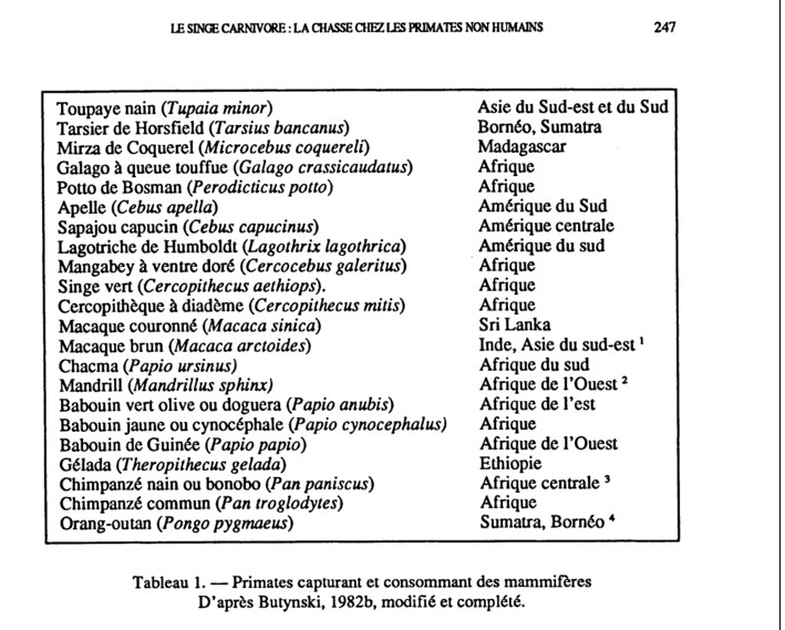 Si, le gorille. Pas mal d'autres, d'ailleurs. Si ça t'intéresse voici une liste des espèces qui chassent des mammifères. ![]() http://www.persee.fr/doc/bmsap_0037-8984_1992_num_4_3_2320 Sinon tu en as insectivores aussi.