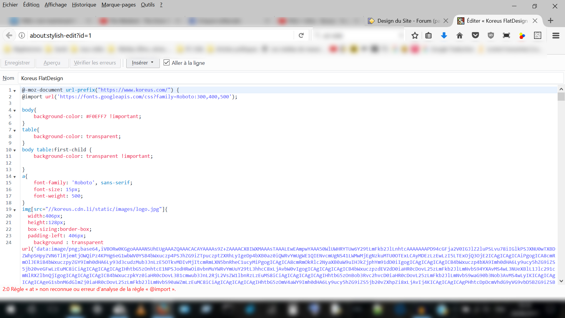 @LeNarvalo ah t'es sur Firefox. Le plugin est peut-être différent. Essaie de mettre le import en ligne 1 ça devrai résoudre le problème 🙂