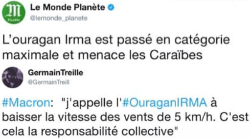 Je viens de voir la liste des prénoms des prochains ouragans.