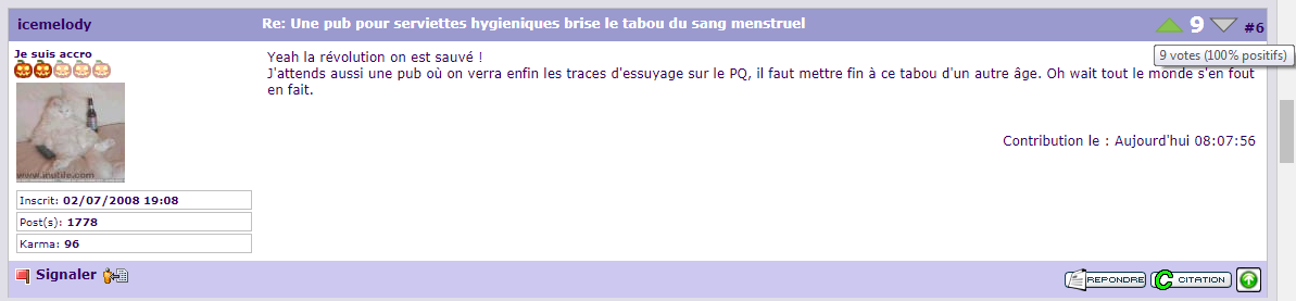 J'attends aussi une pub où on verra enfin les traces d'essuyage sur le PQ, il faut mettre fin à ce tabou d'un autre âge. Oh wait tout le monde s'en fout en fait.