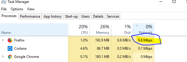 C'est en ethernet ça? Parce qu'effectivement, j'avais la même vitesse dans une maison à 4 et suffit que quelqu'un d'autre regarde YouTube pour que je ne puisse pas regarder moi-même des vidéos. Si personne n'est connecté sauf toi tu devrais pas avoir de problème, mais si d'autres gens se connectent en même temps 11Mbps c'est vraiment pas beaucoup et ça expliquerait le problème. Puis en wifi en général t'as encore moins de bande passante que ce qui sort en ethernet.![]() Ce que j'ai encerclé c'est ce que mon PC utilise en temps réel. C'est un nombre en Mbps. Ton max est apparemment d'environ 13Mbps en tout (12Mbps en download, 1Mbps en upload). Tu peux cliquer sur "names" pour que ce soit organisé par programme. Donc si tu vois qu'un PC est prêt de 11Mbps, va falloir regarder quel programme utilise tout ça. ![]() Du coup, qu'est-ce qui a changé depuis quelques temps? Les deux autres utilisateurs ont peut-être découvert youtube, koreus, imgur, reddit? Ou alors Free a détérioré la connexion?