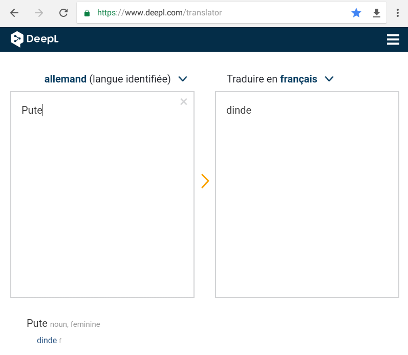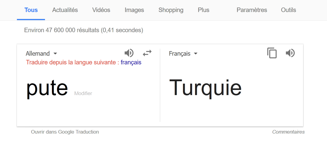 Qu'ils ne font pas une traduction directe vers le français, mais passent d'abord par l'anglais puis de l'anglais au français (turkey en anglais signifie aussi bien la dinde comme la Turquie - le pays) Deux cheminements sont alors possibles: pute -> turkey -> dinde pute -> turkey -> Turquie Petit Pet Fade: Un père prend en photo son fils recevant son diplôme de fin d'année par sa prof ![]()