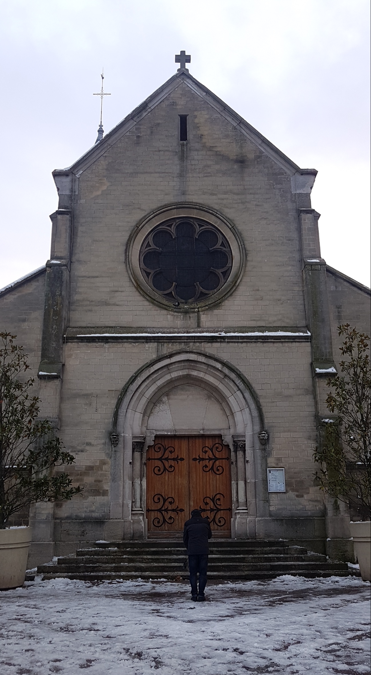 Il y a 2 jours, j'ai vu ce monsieur qui saluait l'église de ma ville. C'est pas une super photo. Mais j ai trouvé ce monsieur touchant et bienveillant.