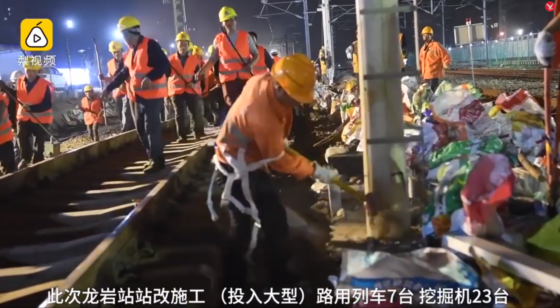 "Sept trains et 23 excavateurs ont été utilisés aux côtés de 1500 personnes, pour compléter l'énorme projet de construction."