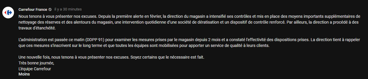 comme d'hab il y en a qui vont trouver ca scandaleux de voir des souris se promener, et carrefour va faire un message comme quoi ils ont viré le reponsable et qu'ils trouvent ca tout autant scandaleux... Alors que des souris il y en a partout, tout le monde le sait, sauf les jeunes chochottes