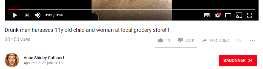 | Fantôme | Et ça post sur youtube ses propres conneries comme quoi elle pense être dans son droit. Pis ça invoque les enfants dans le titre de la vidéo XD. Je suis intouchable je te film et je vais t'afficher sur le net. C'est affligeant cette mentalité.