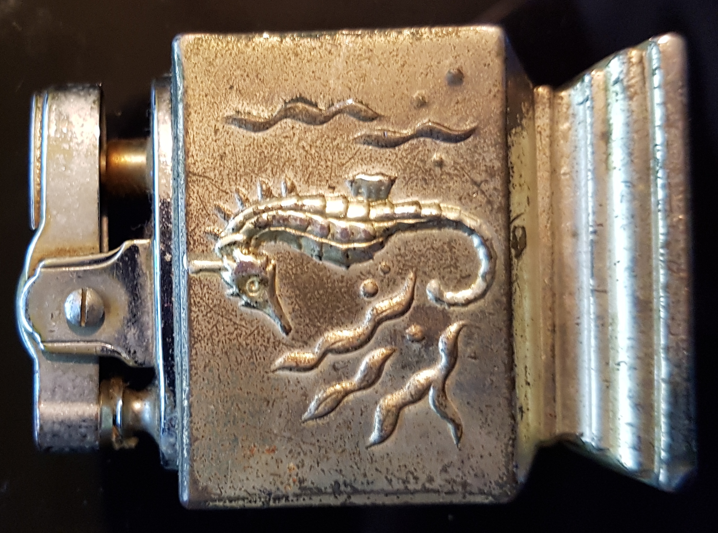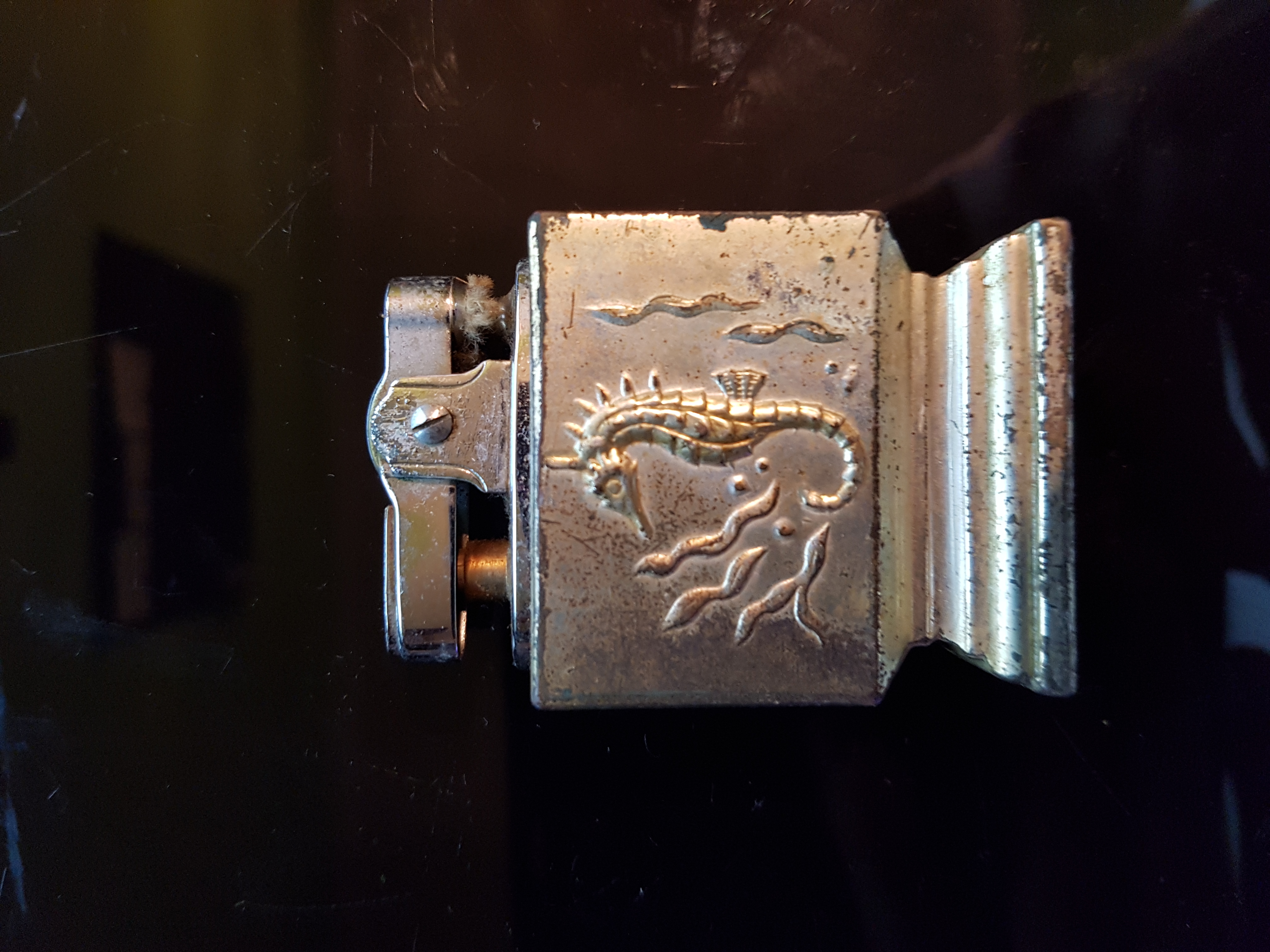 | Je poste trop    Inscrit: 08/01/2005 13:41 Post(s): 15192 Karma: 12563 | Alors ça peut paraître étonnant au premier abord, mais ce petit objet qui tient dans une poche était utilisé pour faire du feu. On le remplissait d'un combustible comme du gaz ou de l'essence. Par un procédé ingénieux, on libérait ce combustible en pressant un bouton tout en provoquant une friction sur une pierre à briquet (qui est en réalité un alliage de métal) afin de générer des étincelles propres à déclencher une petite flamme. C'était un objet principalement utilisé par les fumeurs, qui s'en servaient pour allumer leurs cigarettes. L'animal qu'on peut voir gravé dessus est un hippocampe, également appelé cheval de mer en raison de la forme supérieure de son corps qui évoque une tête de cheval. C'est un petit poisson présent un petit peu partout dans le monde, et qui a la particularité de voir sa progéniture portée par le mâle. Les petits traits autour, qu'on pourrait prendre pour des serpents, sont plus probablement une représentation d'algues, qui est l'habitat naturel de l'hippocampe. C'est vraiment un bel objet. Je pense qu'on peut tabler sur une mise en enchère à 5€. Allez, on passe au grenier ?