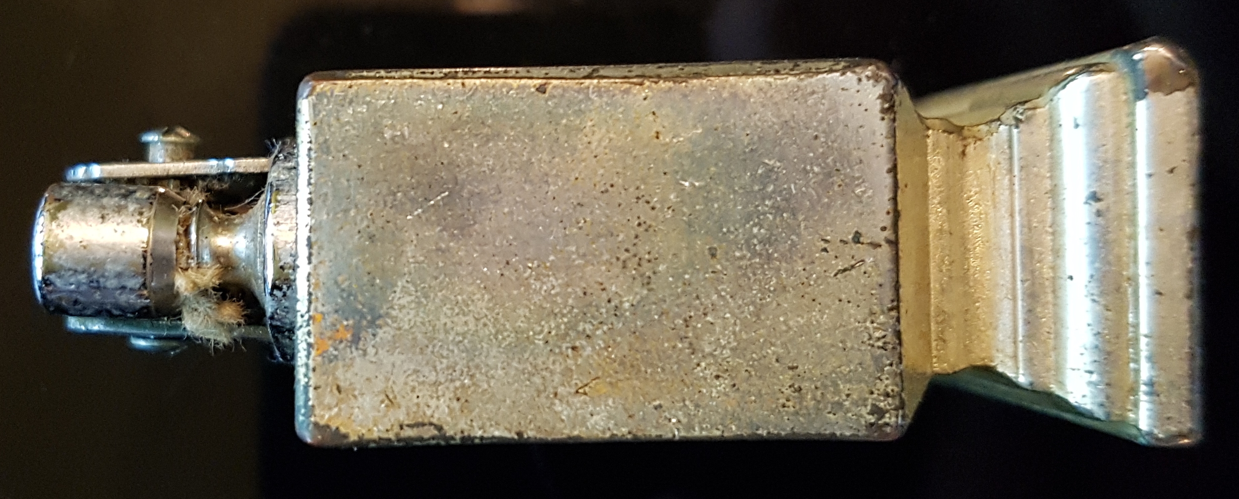 | Je viens d'arriver    Inscrit: 25/04/2016 23:09 Post(s): 4 | Bonjour, Merci pour vos réponses. -Flo- pour la partie technique, je ne te cacherais pas que je me doutais pas mal de l'utilisation de l'objet.. Sinon, effectivement je ne compte pas le vendre car il a une grande valeur à mes yeux. Je cherche uniquement à connaître sa marque, son âge, etc En ce qui concerne le dessous du briquet, j'y avais déjà pensé mais il n'y a rien d'écrit nul part. C'est pour ça que je mettais tourné vers un forum pour essayer de trouver un connaisseur car en l'état actuel des choses, je ne vois pas du tout comment l'identifier. Je vous met quand même les photos du briquet sous toutes ses coutures.