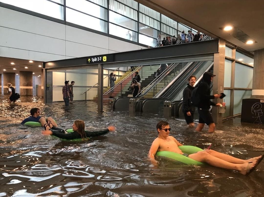Ah merde, j'ai pas fait gaffe ^^ Pendant ce temps-là, en Suède... :  Suite à de fortes intempéries, la gare d'Uppsala se retrouve sous eau. Mais comme en même temps, le pays souffre de la canicule, certains en profitent.