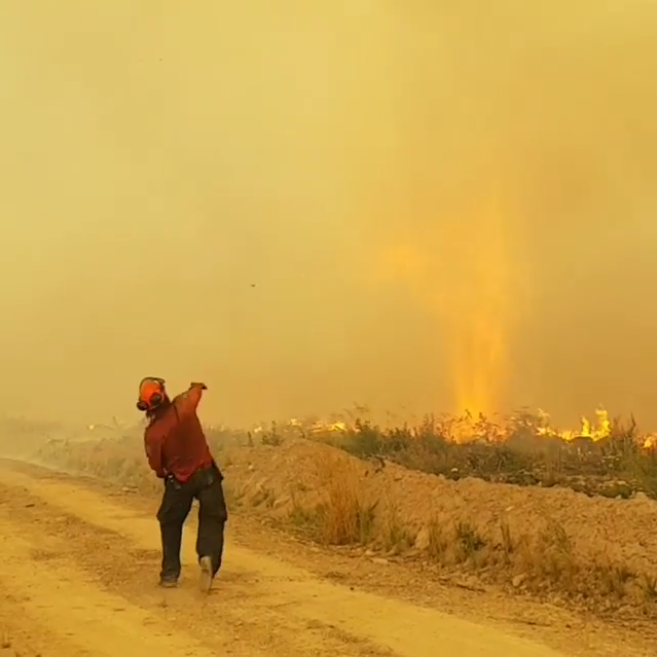 Video by mar.lowsky Citation : Fire tornado destroyed our line. It threw burning logs across our guard for 45 minutes and pulled our hose 100 plus ft in the air before melting it. That's definitely a first. #firenado #startthepump #wildfire