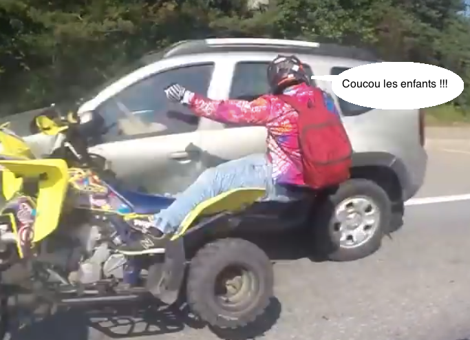 Comme dit ton VDD, comme il avait un casque, il s'est pris pour une moto..!! PS, Faudrait aussi dire aux automobilistes d'ouvrir leur fenêtre de temps en temps.. A force d'être dans un habitacle, l'air n'y est plus renouvelé, et l''apport en oxygène est drastiquement réduit..!! Et ca s'applique même aux personnes en cabriolet.!!