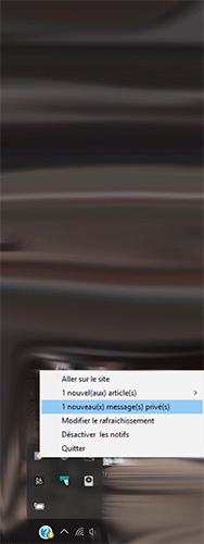 | Fantôme | Alpha 0.2 : Nouvelle version [9.77Mo]   Bug corrigé :  Mise à jour du nombre de notifs et de messages privés dans le menu contextuel Bug non corrigé :  Notifications Windows cliquableµ --- Edit : Trop de bugs j'en peux plus! J'ai passer des heures à faire du multithreading avec Tkinter et visiblement ce n'est pas possible de créer plusieurs fenêtres Tkinters avec mon script... J'ai essayé 50 trucs différents. J'avais réalisé des notifications sympa avec l'image d'illustration des articles publié sur le site mais du coup même une fois fermé impossible d'ouvrir la fenêtre de Connexion ou la fenêtre de Rafraichissement. Le script tourne en boucle et je ne sais pas pourquoi alors que je peux ouvrir "Connexion" puis "Rafraichissement" si "Connexion" est bien fermé... Bref, incompréhensible pour moi.