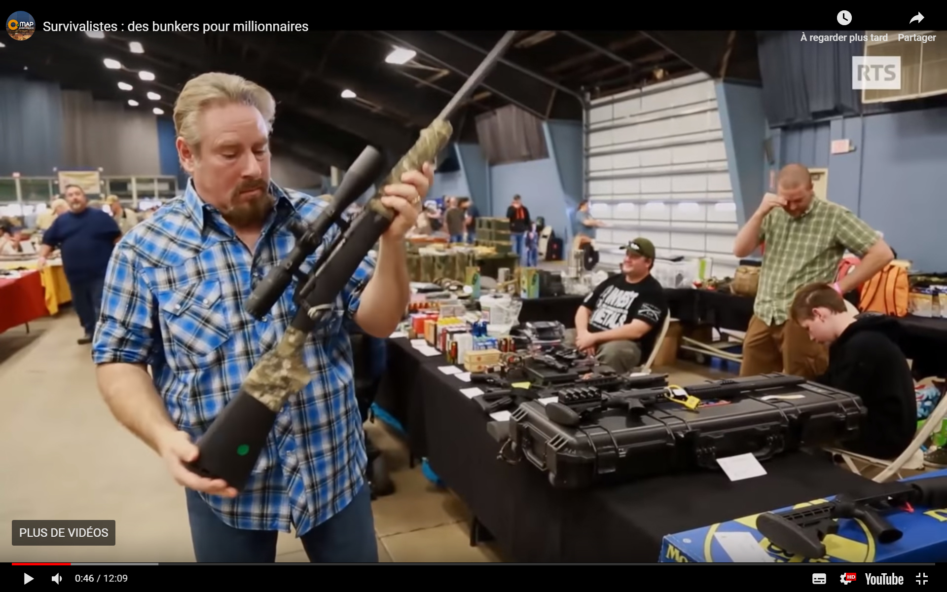 Bon résumé du plan marketing des fabricants d'armes. En parlant d'armes c'est marrant, un mec au début cite (dans le désordre) les trucs essentiels pour survivre. Les armes, bien qu'absentes de cette liste, semblent former 90% des stands. Bref c'est juste une autre façon pour les américains d'assouvir leur passion des armes, avec un petit parfum survie pour donner du piquant.