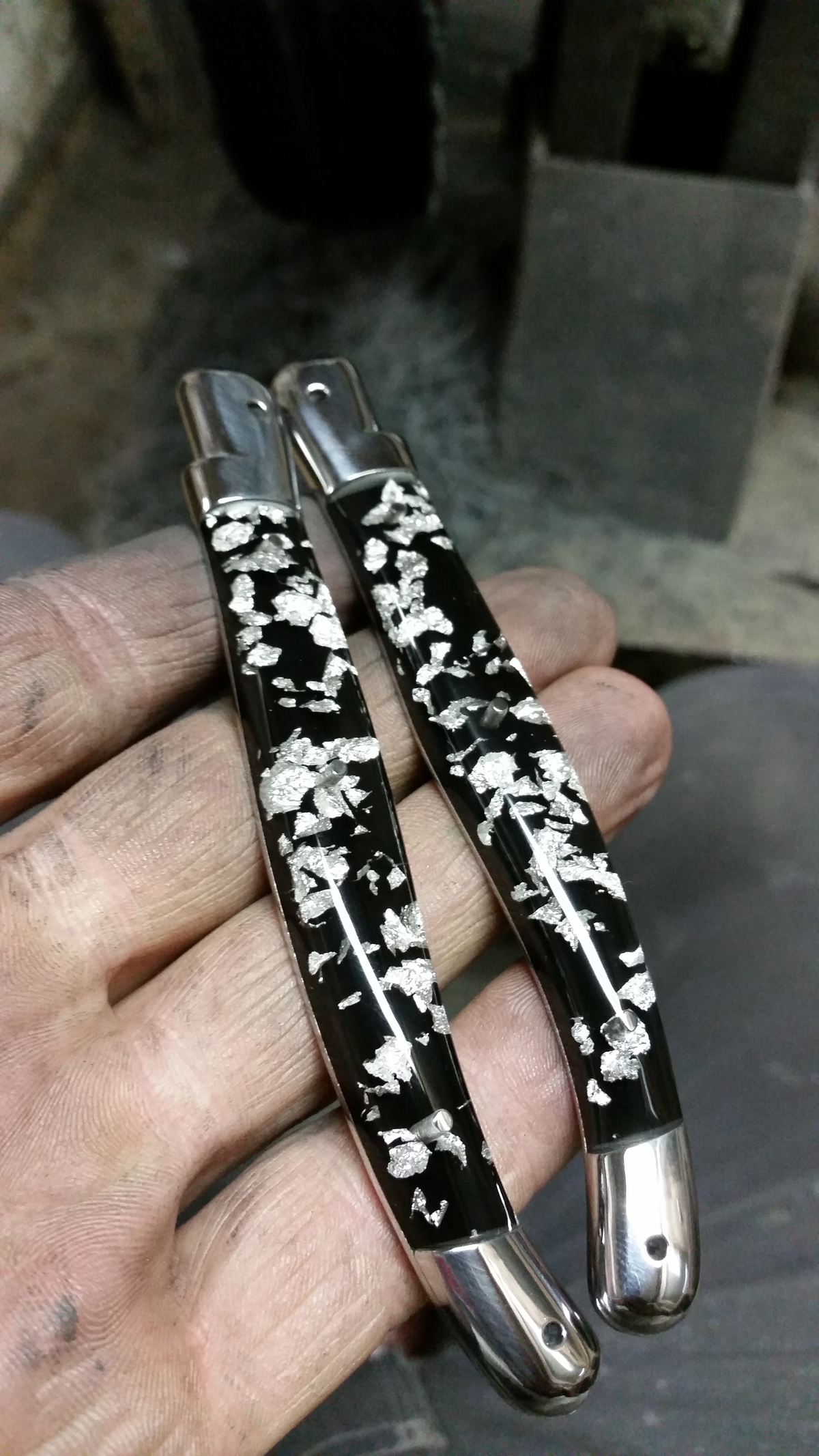 Je comprend tout a fait ce que tu veux dire. En fait, je fais du taf manuel aussi. Et je comprend son processus! Tu ne peux pas te dire, "mouais, la y a pas besoin, je vais de toute façon enlever la matière après" Ou la c'est bon mon trait passera!" C'est trop hasardeux....Et c'est comme voir un tas de fils emmêlés! Même si ils ont une couleur distincte pour les repairer et les brancher sans se tromper, tu défais tout ces noeud et tu mets tout a plat, pour y voir clair! La, c'est un peu pareil! Souvent avec mes Potes de mon groupe de Fiat 500 ils disent "pff pourquoi ils ont mis ça, ça ne sert a rien!" Je leur répond souvent "si ils ont prit la peine de fabriquer cette pièce, il faut partir du principe que ça sert a quelque chose, surtout sur une voiture économique fait a moindre coup avec le minimum syndicale dessus!" Par exemple un truc que je fais et qu'on va me dire que ça ne sert a rien...Quand j'ajuste des plaquettes, allez, par exemple en os de Girafe! On voit les plaquettes brutes ![]() On voit bien sur la photo que le bord est arrondi et très fin...Et bien je passe un gros coup de bande en long pour retrouver de l'épaisseur (comme sur les plaquettes de la photo en dessous) et certains vont me dire que ça ne sert a rien car au final, le couteau de ce morceau brute, je vais le façonner l'arrondir etc... On le voit sur les deux photos suivantes (désolé c'est pas l'os c'est autre chose, c'est juste pour schématiser! Imagine qu'a début ces plaquettes étaient arrondies comme celle en girafe) On voit qu'ai final que des bords bien perpendiculaires, on en revient a des bords arrondi, que tout ça part en poussière, donc que c'est pas utile de retoucher ces bords ![]() ![]() Et bien je dois passer ce coup de bande pour que le bord de mes plaquettes soient perpendiculaires pour quand je les tiens avec mes doigts pour les passer au lapidaire, que je puisse les tenir sinon c'est mes doigts que je passe au lapidaire! L'exemple est con...Je ne sais pas si tu as compris ou je voulais en venir. Juste au fait que si! Il faut qu'il enlève ces deux bords pour partir sur de bonnes bases, a plat, même si c'est pour au final y arrondir de nouveau a cet endroit la! Et que finalement il y avait la place Citation :