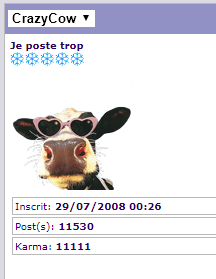 ![]() Ça veut dire en principe que vous avez apprécié ce que j'ai posté, donc merci à tous pour vos 11111 upvotes ! ![]() @Koreus, @happynico, @goloubou, @Marsu_Xp, @Format_c, @-Flo-, @Yazguen, @Freud, @Axelou, @filleapoil, @Skwatek, @PurLio, @Kirikoo, @logomoca, @Mitri, @Zertyy, @Am0rPhe, @Sir_DEC, @Babat, @-does-, @ouzvig, @kikun, @zeldalyoko, @Atchoom59, @-JoJo-, @Rodhar, @SpirAngel, @Hebus25, @Astrogirl, @Ellinas, @Adr1enb, @Remkage, @krakot3, @Alex333, @wooot, @CrazyCow, @Evil-Ash, @Galora, @Djoach, @SEB93, @Leviatan, @Samus, @meGAmeS1, @_--_--__-------, @TheLord, @Prohalo2, @Croc63, @SonyDian, @-Cyr-, @Pouip, @Guraz, @Aethnight, @jabber1, @Tridors, @goreghost, @-Ninja-, @gabberteam, @bin0use, @ExploZe, @fredoyatta, @Zihark, @DeeNa, @Konoe, @Harimau, @LeO-Fr, @TruiT3, @Surzurois, @Siddh, @LeNarvalo, @lvishd, @Ilanos, @kaporalhart, @PiMi07, @hapyme31, @Scorrp, @Geo-graphic, @tewit, @Kilroy1, @nilsss, @person12310, @Spast, @Drakkaru, @kahlan, @LeFreund, @chableu, @SMouth, @Kirouille, @Gakerai, @Holly-Verris, @chopsuey, @Hetzer, @lithit, @Scalou8, @pipota, @Loucheux, @Onlymoi, @MrBlob, @corent2, @Clemrom, @Quenelski, @Nutell_moi, @yayabe, @Infame_ZOD, @JohnLemon, @Chris_, @r8dsn0w, @Nebinaf, @akrogames, @Asmodeus, @CureSafaia, @Garnouille, @Trichcrou, @GrooveGang, @Admonitio, @Boboss, @Segfault_, @TomBomb, @petrou, @dtclulu, @Nyark_Nyark, @Crines, @shinix, @Camyp, @Z3bbra, @Mister_Claymore, @vivaberthaga, @JeanjackSaucis, @WeWereOnABreak, @goloume, @Ubbos, @Slayersun, @Padma, @Miiiichel, @MrAllerre, @Norbert, @Rhododendron, @Leviosa, @Lindien, @Tunkasina, @Anthooo, @Hugo-Drax, @MonsieurGoule, @Baba-Yaga, @Clayton, @koikoi_koi, @NeoTendar, @Carapuce, @Dramelgar, @Thamziks, @Pierrickz, @Obviously, @Fabien_, @Mazelys, @indianjones, @Piteur, @Avaruus, @AppliKoreus, @Palimpseste, @defds, @Nisfero, @CrazyCat, @pupuxe, @Kalu_, @Takateck, @Luneale @Marsu_Xp @Adr1enb @Zertyy @Skwatek @Wiliwilliam (Même si je ne peux pas vérifier, je pense que dans tout ce karma vous avez bien du au moins participer pour 1 point )