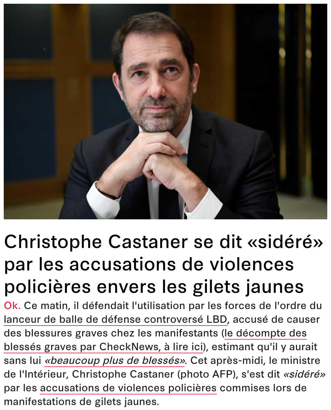 Effectivement, les coups de LBD dans la tete c'est abusé. Et c'est abusé que les flics mis en cause ne soient pas au moins suspendu un temps