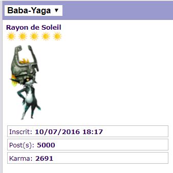 j'ai pointé à 29. Baba-Yaga : 263 / Accro Ambitieuse on voit ce que ça donne ce soir ![]() Joyeux 5.000 posts ![]()