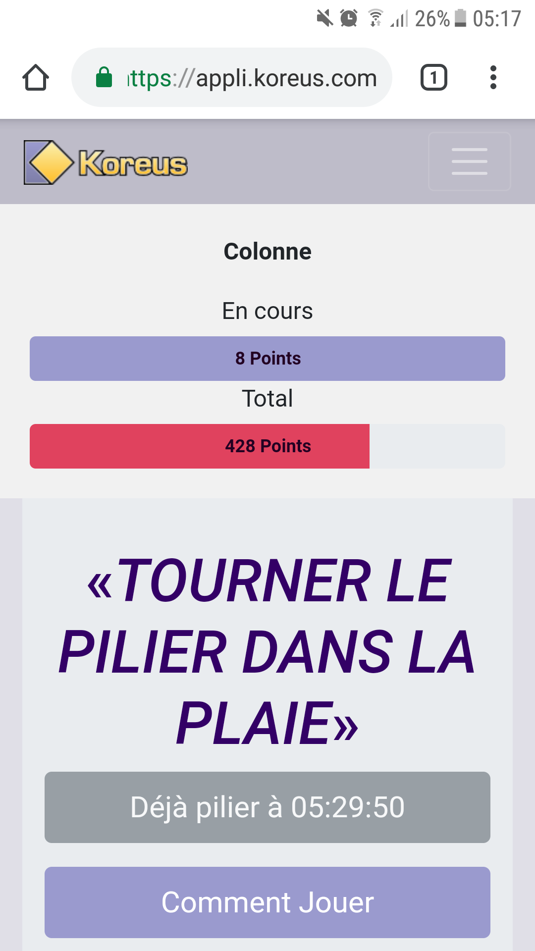 ![]() Je me lève à 5h17, je veux pilier mais l'app me dit que c'est déjà fait avec l'horaire de la veille ! J'ai rafraichi la page plusieurs fois, rien n'y a fait. Du coup, il me manque 4 points dans l'histoire...