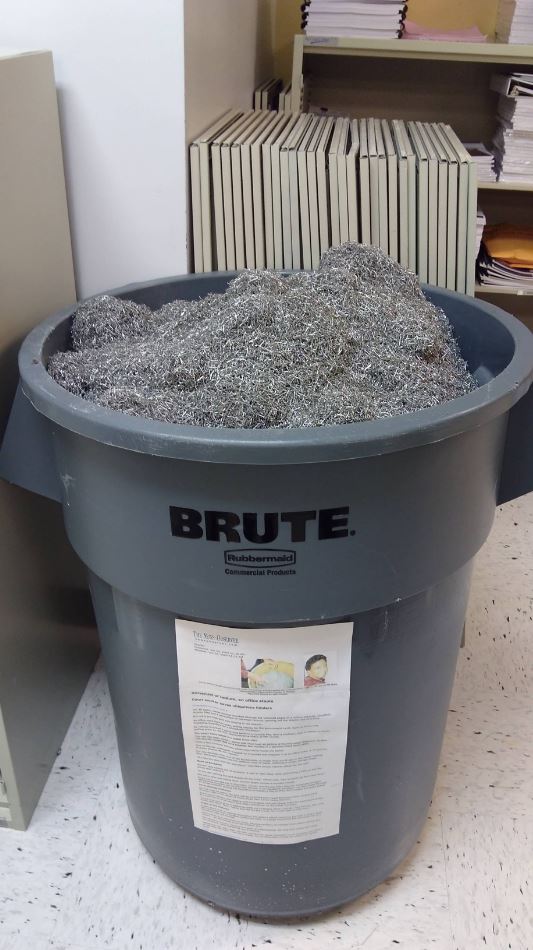 Un bureau a collecté les agraphes du bureau depuis les années 1980 (quand des documents étaient desagraphés pour être scanné, etc.)