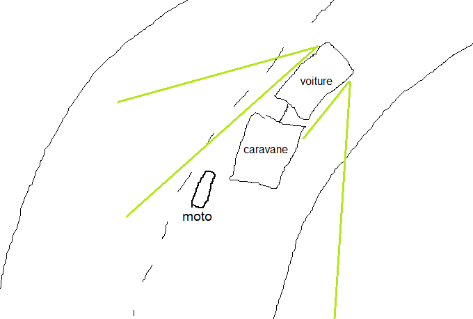 Ton dessin est très joli mais ne représente pas la situation actuelle. Dans la situation actuelle, quand le motard arrive la route est droite et la caravane n'est pas encore dans le virage.