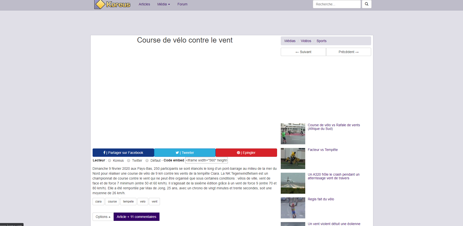 Je ne sais pas pourquoi, mais dans les 4 derniers articles (explosion dans un tunnel, course contre le vent, ombres chinoises et chien serviable), je n'ai que des écrans blancs à la place des vidéos. Alors que je peux les voir dans la CDL. ![]()