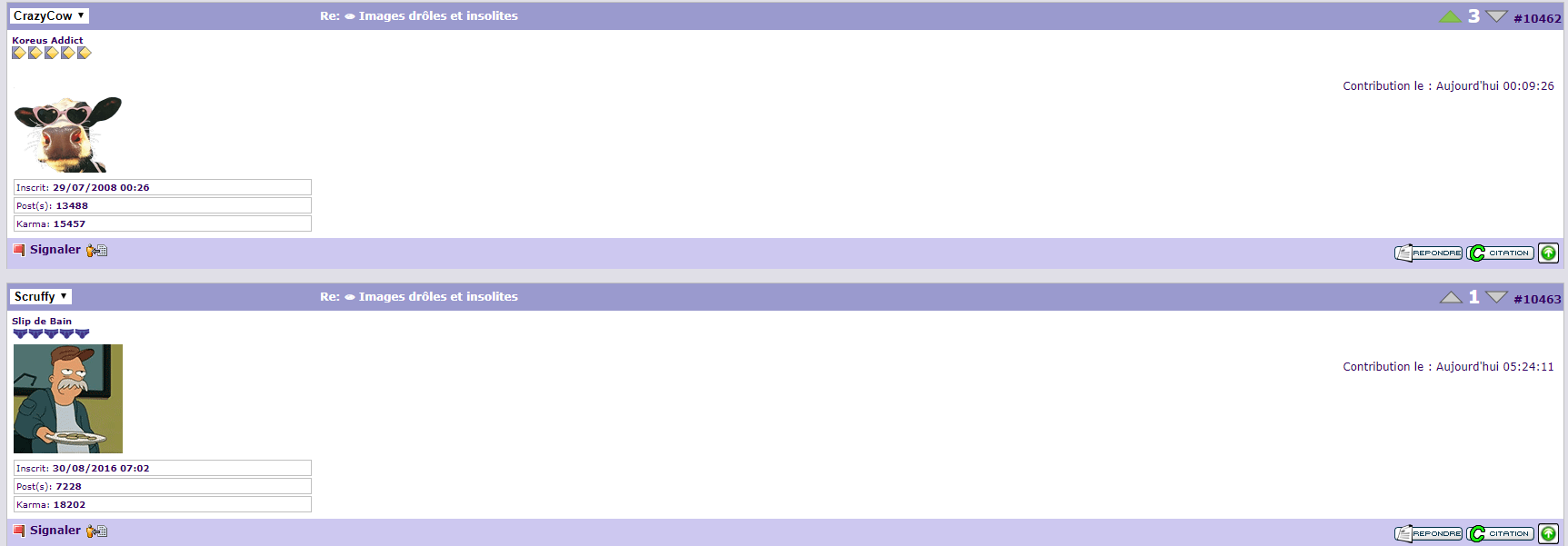 Nouveau problème d'affichage de certaines images. Dans le topic "Images insolites", je ne vois pas les images de CrazyCow et de Scruffy. En revanche, je vois celles de chbenz, d'Asmodeus et de _Spo0n_ sur la même page. Un aperçu de ce que je vois : ![]() Ce genre de problème vient de moi ? De mon navigateur par ex (je suis toujours sur Brave) ? NB : je vois ma propre image que j'ai postée ci-dessus.