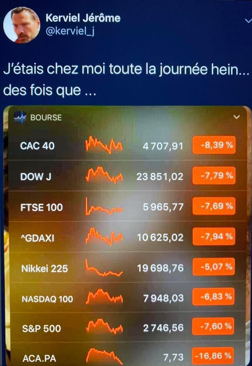 | J'aime glander ici    Inscrit: 23/05/2009 19:21 Post(s): 5175 Karma: 5709 |  Distance de 1 mètre respecté à la comedie de Genève Blague à part ils sont "contraints" d'annuler leur programmation
