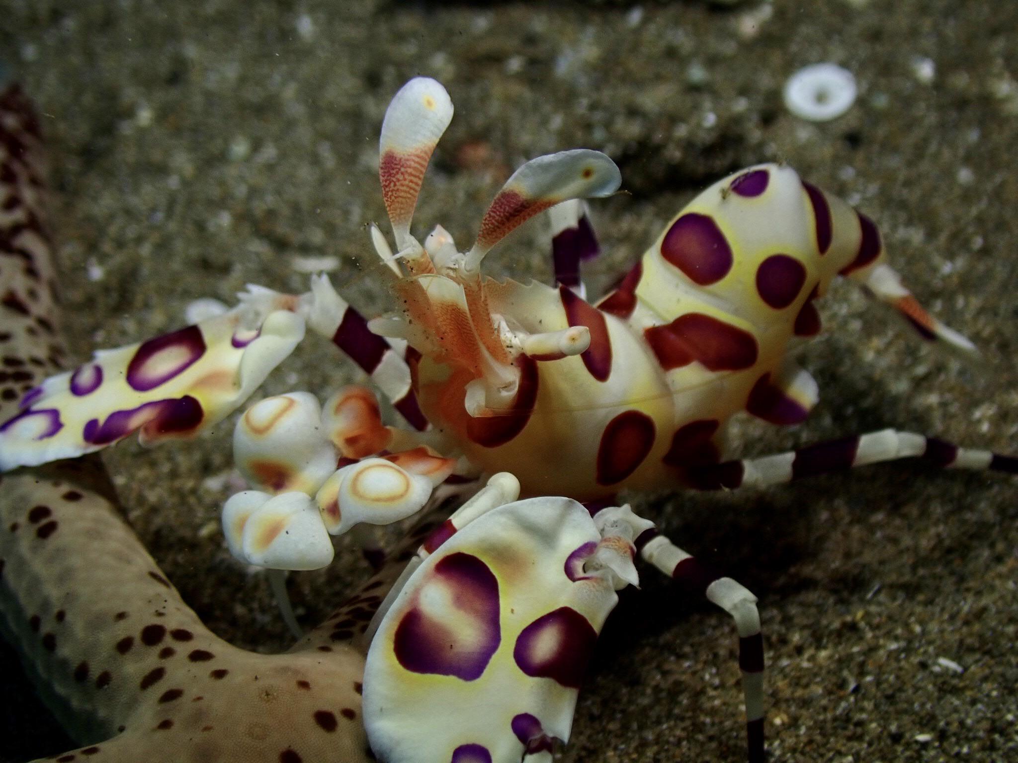 | Fantôme | Animaux de la mer (1) Nudibranches   Crevette arlequin (Hymenocera)  Étoile de mer (gros plan sur une extrémité d'un de ses bras. Les petites extensions translucides finissant en ventouses sont les appendices qui lui permettent de se déplacer)  Poulpe vu à Piti Bomb Holes à Guam  Poisson coffre jaune (Ostracion cubicus) pris à Koh Lanta en Thaïlande
