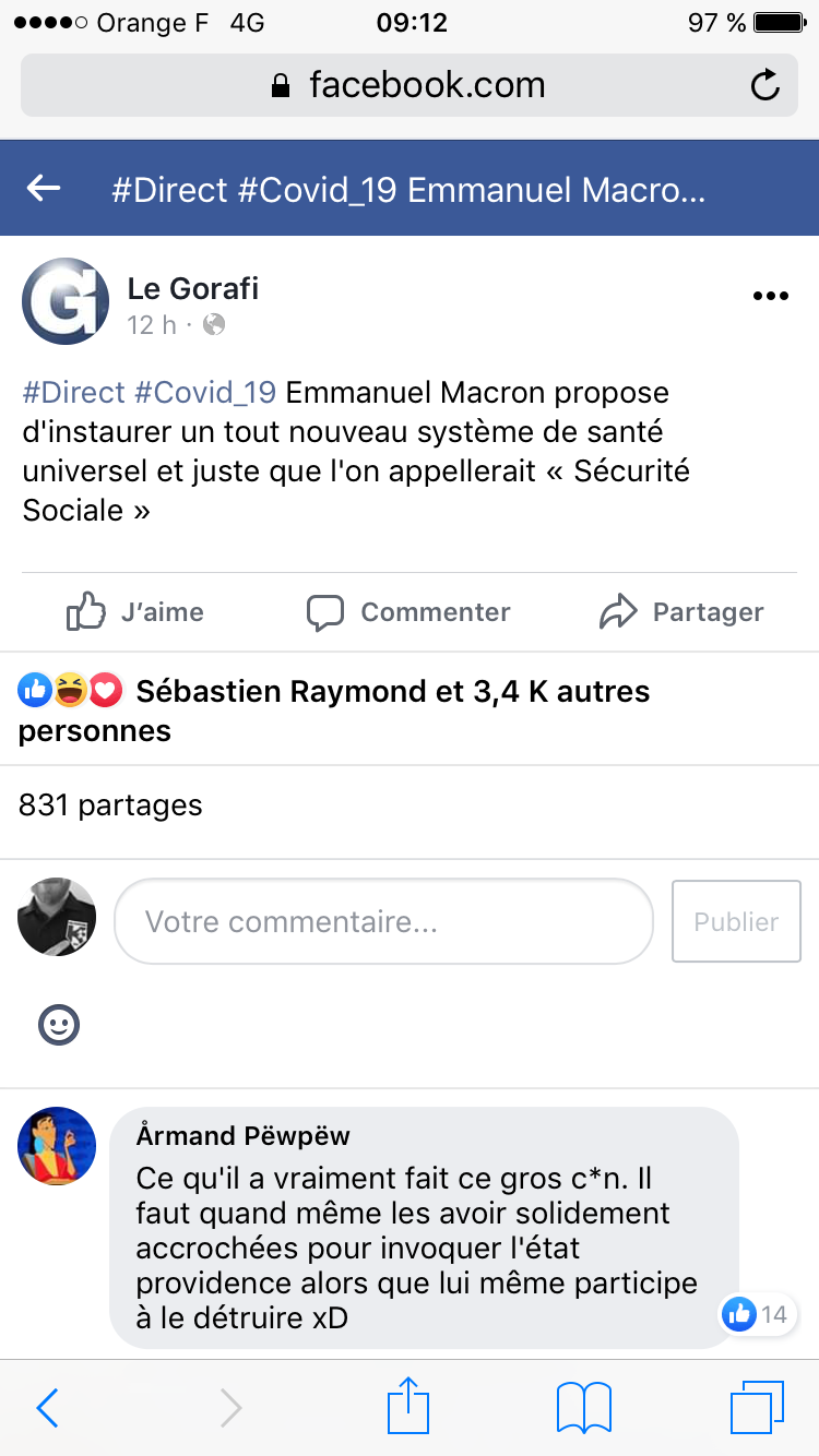 | Je viens d'arriver    Inscrit: 14/03/2017 10:11 Post(s): 38 Karma: 111 | Un peu de légereté...  Et tant pis pour tous les petits branleurs qui séchaient l'anglais au collège pour aller fumer des gauloises sans filtre, je ne traduirai pas, ça gâche tout les effets. RAPPEL - Consignes de vote pour ce weekend - RAPPEL:  ou dans le pire des cas:  Mais en fin de compte il restera l'amour  ... ou pas, du coup (c'est pour ça)