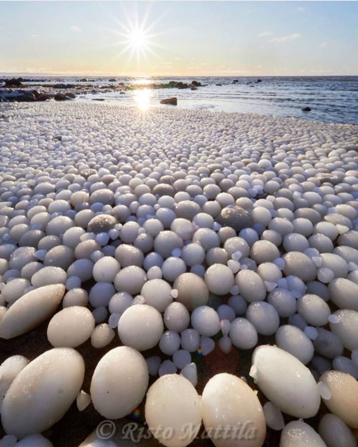«Oeufs de glace» .... Ce phénomène rare se produit lorsque la glace
