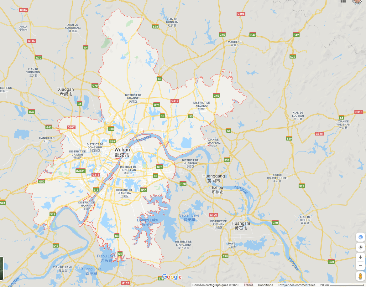 Bordel elle est immense la ville de Wuhan. Elle est plus grande que mon département (env.25% en +)