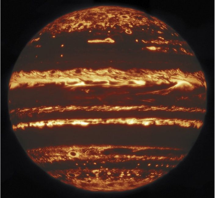 Jupiter en infra-rouge. Photo prise du Gemini North Telescope à Hawaï.