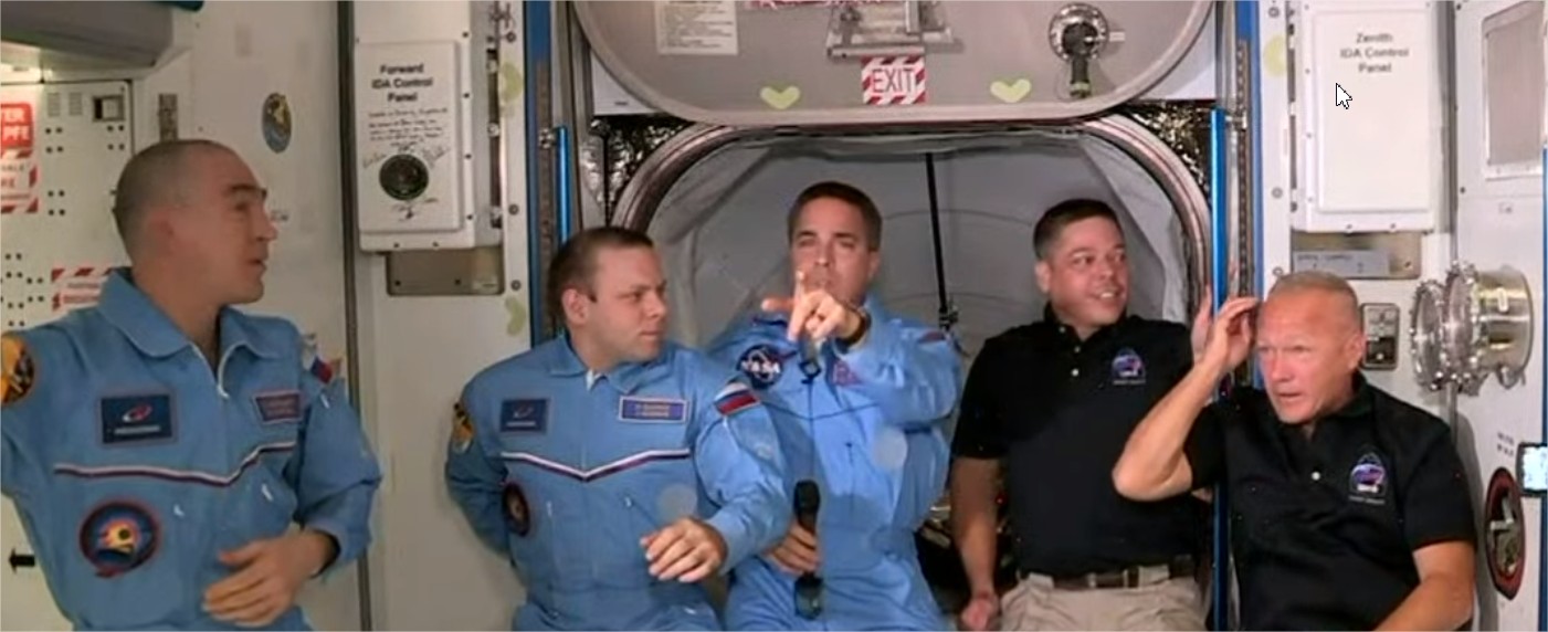 ce vol en gros c'est 1a 1ere fois que SpaceX mes des humains dans sa capsule. c'est aussi depuis 2011 le 1er lancement avec équipage humain au départ depuis les USA. depuis 2011, les A/R pour l'ISS se font uniquement depuis le Kasagstan, sur la base russe de Baïkonour avec les fusées Soyouz