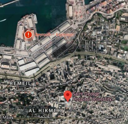 Faut savoir que l'hôpital Saint George se situe à environ 900m de l'explosion (l'appart de ma sœur a plus de fenêtres ni de portes, il se trouve à côté de hôpital). Là-bas, ils vivent tous avec les fenêtres fermées + la clim, ce qui explique les nombreux blessés dus aux éclats de verre. Un des colloc de ma sœur avait la fenêtre ouverte sans clim et il s'en est mieux sorti.