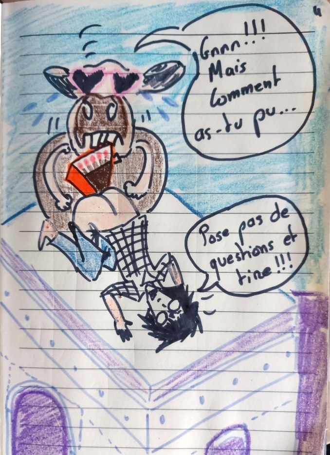 Il y a quelques jours, je me suis dis que j'aimerai bien être dans un des dessins. Bon, bah je regrette un peu l'avoir souhaité ![]()
