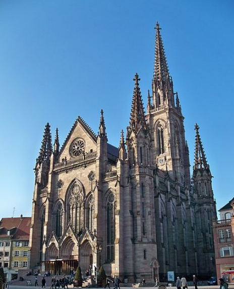 C'est effectivement un Bingo ! J'aurais du masquer la rue !! C'était mon petit coup de coeur, Mulhouse étant ma ville natale ^^ Pour info le bâtiment religieux n'est pas une cathédrale mais un temple protestant. Le plus haut de France d'ailleurs ! Mulhouse ayant été une petite République indépendante, une sorte de Monaco, et ce jusque sont rattachement à la France (assez tardif) en 1798, elle n'avait pas pu profiter de grand territoires agricole comme ses voisines Colmar et Strasbourg et a tout misé sur l'industrie et le commerce ce qui a crée des fortunes. Le dogme catholique imposant de léguer ses biens à l'église, mais pas la réforme protestante, la bourgeoisie républicaine mulhousienne enrichie par son industrie naissante a de ce fait a opté pour la réforme. Il est d'ailleurs intéressant de constater que globalement le protestantisme s'est propagé dans les grands pôle industriels et commerciaux ayant favorisé l'apparition de riches familles qui rechignaient de plus en plus à léguer leur fortune à l'église (Pays Bas, Nord de l'Allemagne, Suisse, etc..) Après cette analyse vaut ce qu'elle vaut, il doit y avoir une foule de contre exemple. Cependant dans le cas de l'Alsace, l'industrieuse Mulhouse était devenu majoritairement protestante tandis que les plus pastorales Colmar et Strasbourg sont restées catholiques, la masse de paysans alentours ne s'enrichissant pas, il y avait moins de raison de changer de religion. Voilà ce fut un petit détail de la riche histoire de cette ville méconnue et mal aimée ^^