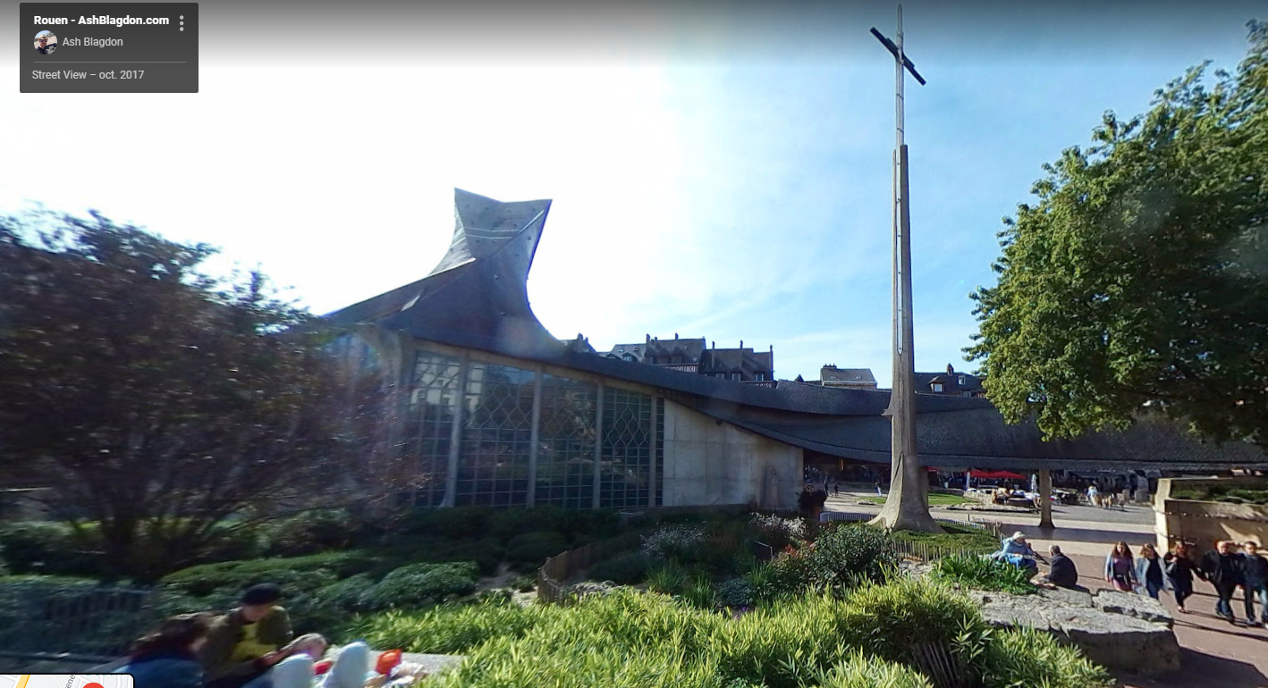 c'est l'église st Jeanne-d'arc à Rouen l'endroit j'étais partis sur une recherche d'église reconstruite après guerre en béton armée en Alsace pour les maisons à colombages. Apres une petite discussion, on a réorienté notre recherche vers la Normandie et la ça été gagnant. ![]()