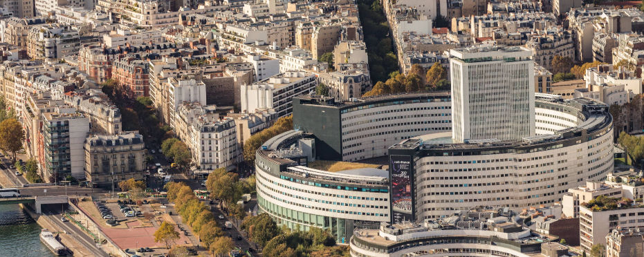 Maison de la radio, c'est un truc rond en bordure de Seine: