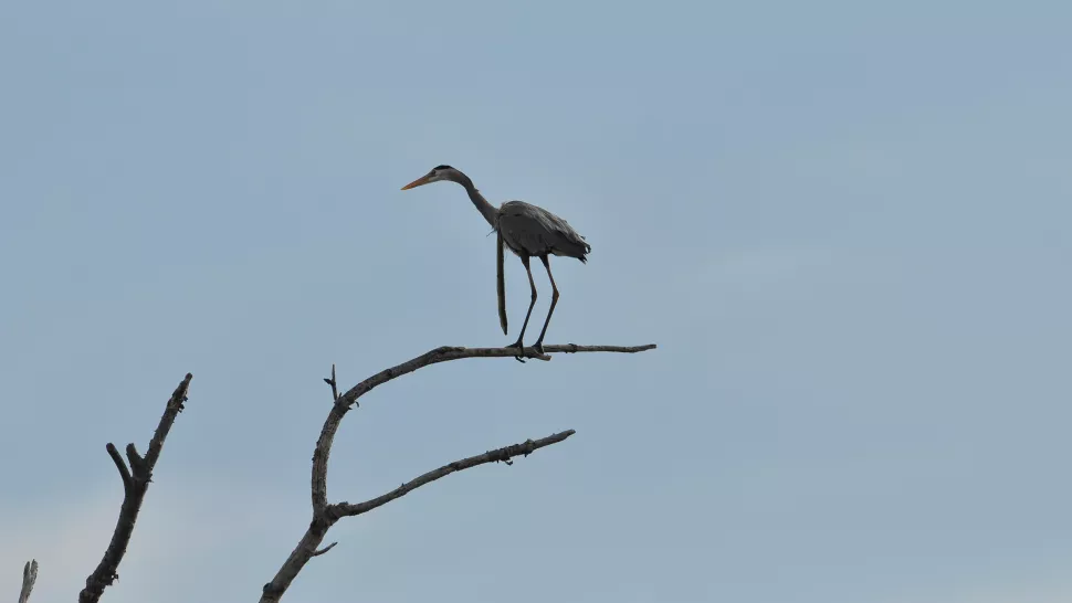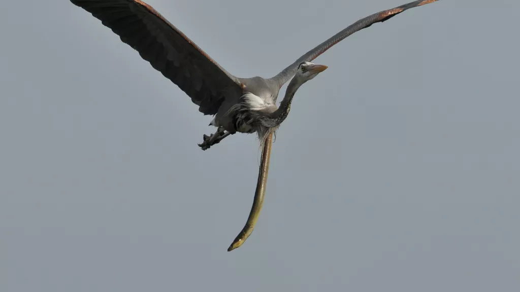 Une espèce d'anguille peut faire éclater l'estomac du prédateur qui l'a avalé avec sa tête très dure ou sa queue. Généralement elle ne va pas loin, coincé dans les muscles et la cage thoracique. Cette fois ci elle a réussi à sortir... de l'estomac d'un héron. L'oiseau ne montre pas de signe de gêne, continuant à voler. L'anguille bouge au début mais vers la fin reste immobile. On ne sait pas si l'oiseau a survécu, il a été aperçu suivi par des renards et des rapaces attendant un repas facile. ![]() ![]() ![]() ![]()