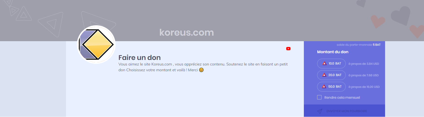 Pour les dons en BAT, je suppose que ce n'est pas encore très démocratisé. Moi-même, comme ça me fait caguer d'avoir à passer par d'autres sites pour pouvoir acheter de la crypto-monnaie puis devoir créditer le porte-monnaie Brave, je préfère attendre de pouvoir directement payer sur Brave pour créditer automatiquement le porte-monnaie. En attendant, je laisse les pubs libres sur Koreus.
