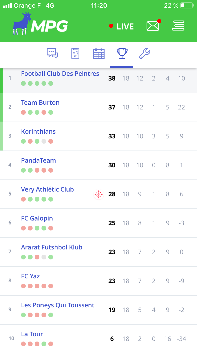 T’as failli gagner Le match d hier entre l om et Nice s est actualisé J’ai fais match nul contre @aioren au lieu d’une victoire Du coup au lieu de 40 j ai 38 Et lui 19 au lieu de 18 Edit: @Wiliwilliam oui le om nice (11eme journée) ca devait être mon predecesseur aux commandes