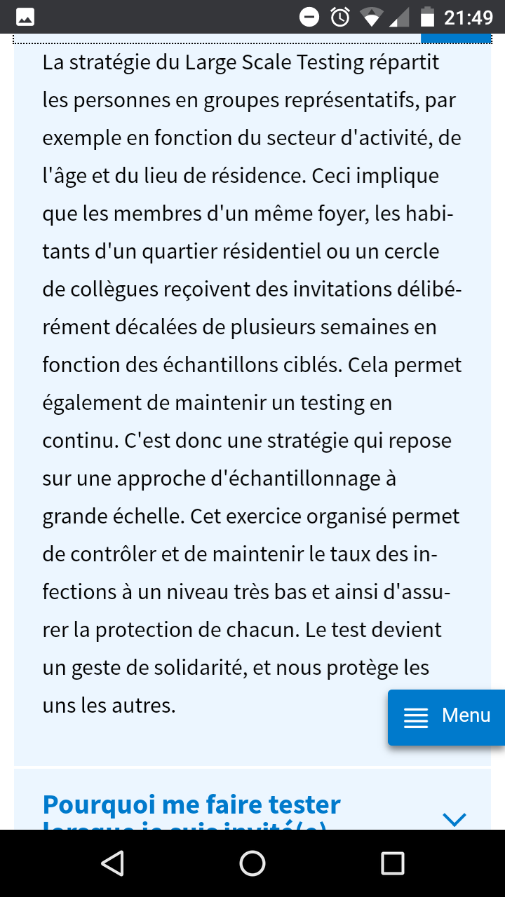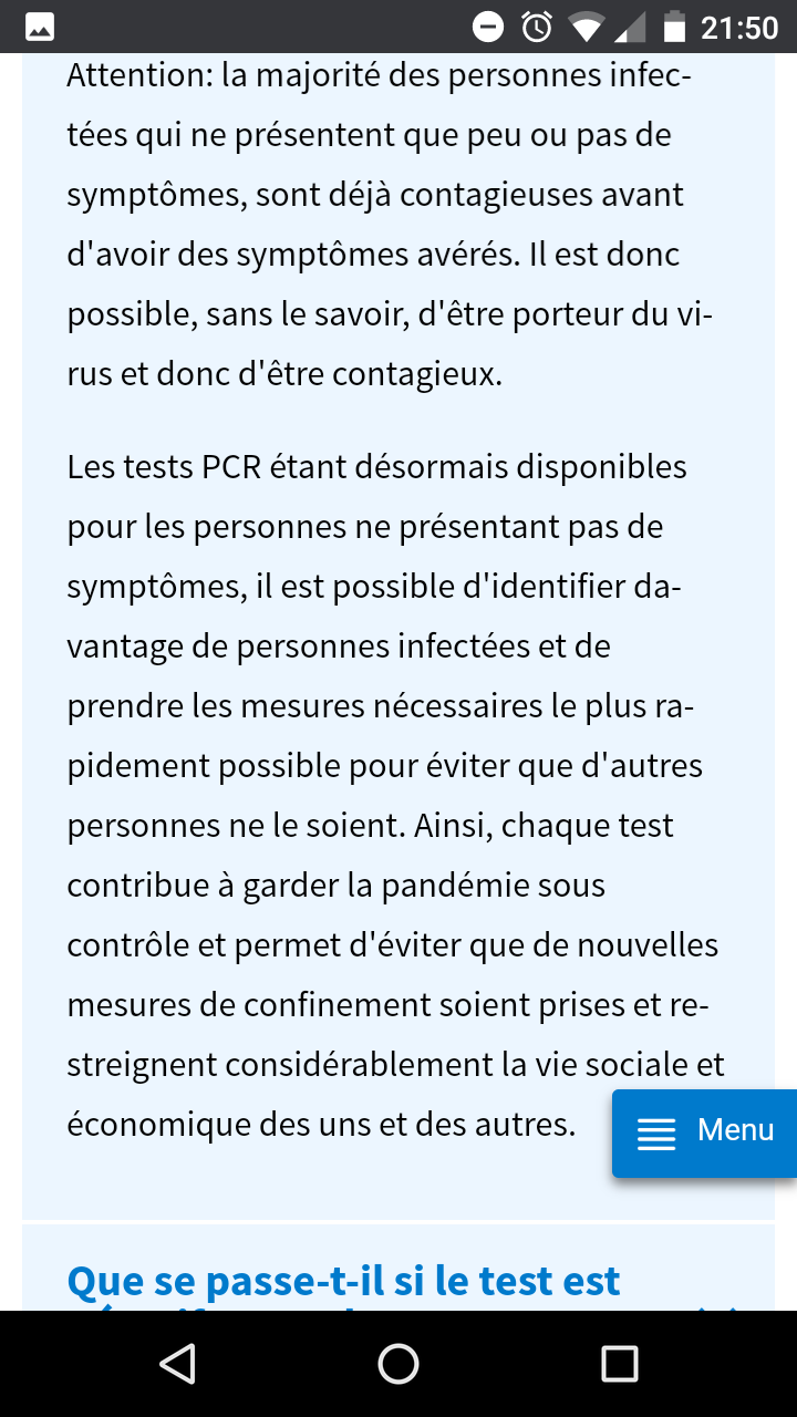 Oui et non, tu présentes ça comme la seule solution, je pense que les possibilités sont plus variées et que ça devrait être une solution parmi d'autres. Je n'ai pas dit qu'un changement de système se faisait en un an, mais si on ne met rien en marche ça ne risque pas de prendre, quelle que soit la temporalité envisagée. Citation : Il y a certes des leçons à tirer et des changements à opérer sur le long terme, mais il y aussi une urgence à gérer sur le court terme. Certes, mais parfois, pour atteindre une vraie résilience, il faut délaisser un peu le court-terme et accepter de penser à long-terme et d'agir en conséquence. Nos politiques sont les champions du court-terme à tout crin, on voit comment la société a évolué. Citation : Et bien sûr qu’on va payer économiquement et socialement dans les années qui viennent le prix de ces mesures, c’est une évidence. Mais encore une fois, la solution sans dégâts n’existe pas. Et encore une fois, je n'ai pas dit qu'elle existait. En revanche, je demeure persuadé que d'autres choix de gestion de cette crise pourraient faire moins de dégâts à moyen et long terme, tous secteurs confondus. Ah et puis tiens, un truc que je viens de découvrir et que je trouve assez intelligent : la stratégie du Large Scale Testing au Luxembourg. Voilà un truc concret qui pourrait être imité en France. Petits extraits en images : ![]() ![]() ![]() ![]() Voilà une solution qui me semble intelligente et pratique, et qui participe à éduquer et responsabiliser. Dans tous les cas, pour moi, la première solution concrète serait de pratiquer la pédagogie : arrêter de nous prendre pour des bouffons et de nous mentir tout le temps, arrêter de ne jamais assumer ses propres erreurs, arrêter de vouloir toujours paraître sans reproche, arrêter de faire croire que tout est maîtrisé quand ça ne l'est clairement pas. Et commencer à entamer un vrai dialogue, à nous informer avec précision, à réimposer une éthique à tous ces merdeux de médias qui nous bousillent le cerveau, à nous inclure réellement dans les décisions et les actions. Entre autres éléments propres à une éducation qui vise à nous rendre sages et autonomes, et pas serviles et passifs. @vivaberthaga Je regarde ça demain. @Baba-Yaga Mais toi, tu es d'accord par rapport à la France ou à la Suisse ? Ou les deux ? Et si c'est par rapport à la Suisse, qu'est-ce qui te semble gênant ? J'avais l'impression que ça gérait un peu mieux à ce niveau chez vous.