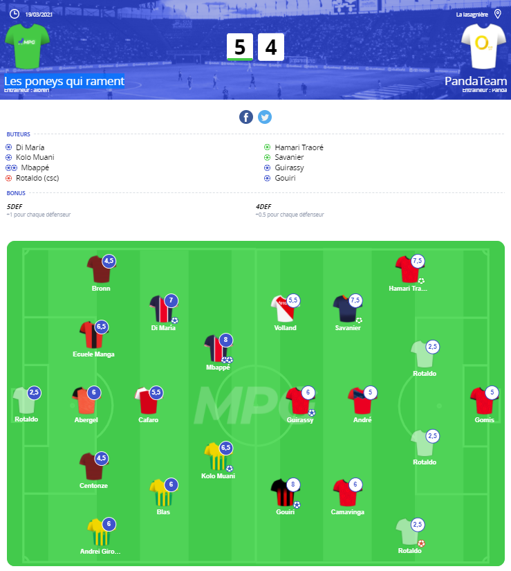 C'est bien ma veine. Pour une fois que je ne mets pas de remplaçant tactique ^^' Un petit triplé de M'bappé pour contrer le doublé de Blas et on n'en parle plus.