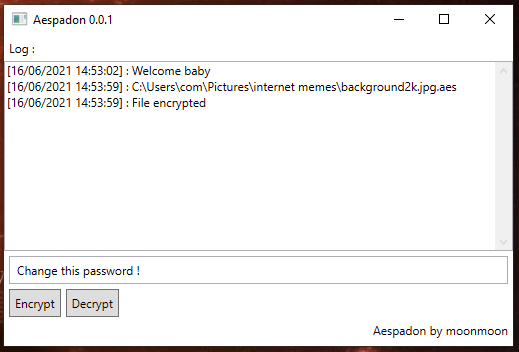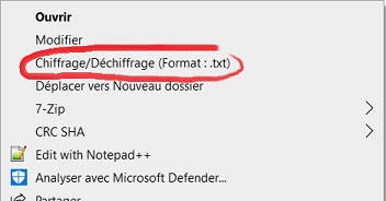 Citation : A priori ton programme cible des personnes qui cherchent un peu plus de sécurité informatique, mais tu le délivres en EXE sur un forum, ce qui est une des premières chose à ne surtout pas faire en terme de sécurité pour un utilisateur. Citation : Ok, tu te sert du mot de passe comme clé. Je ne peut pas l'affirmer (si qnn peut confirmer) mais ça doit être facile à casser. En général on utilise des clé RSA, AES, .... Je peux te filer le code si tu veux t'amuser, faut juste que tu es python 3 d'installer et les modules math_pi et easygui, ainsi que cette image en png (désolé le site de Koreus transforme les images) : ![]() Mon chiffrement est beaaaaaauuuucoup plus simple que du RSA ou de l'AES. Et surtout que je n'ai pas mis de sécurité anti-force brute. (Du genre formater l'ordinateur si plus de 3 essais infructueux @MoonMoon Bienvenu sur Python, ça fait 10 ans ou plus que je suis dessus, je ne m'en suis toujours pas lassé. Par contre je pense que niveau performance tu vas déchanter. Pas mal du tout ton logiciel !!! Chui jaloux Ca serait bien si tu pouvais rajouter une fonction glisser/coller ! (Faudrait que je rajoute sur le mien aussi) Et puis sinon tu peux peut-être rajouter une règle dans le registre comme pour moi, elle rajoute dans le menu contextuelle une ligne : ![]() Exemple : reg add "HKEY_CLASSES_ROOT\AllFilesystemObjects\shell\Chiffrage/D‚chiffrage (Format : .txt)\command" /t REG_SZ /d "cmd.exe /c echo %%%11 > %USERPROFILE%\Encrypt\path.txt & %USERPROFILE%\Encrypt\chemin.txt & start /i %USERPROFILE%\Encrypt\encrypt\encrypt.exe" /f Bon par contre faut que ton logiciel, aille voir dans le fichier chemin.txt. Edit : 10 secondes pour chiffrer une image de 7Mo ??? T'as un PC de 1998 ? ^^ Chez moi c'est instantané avec une image de 7,2Mo. J'ai fais un autre test : 1min17 pour chiffrer un film de 2,7 Go environ.