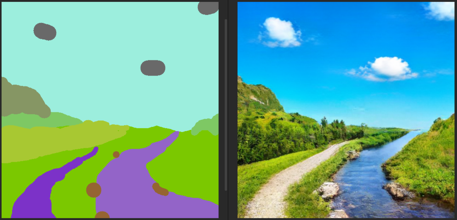 ![]() La promesse de Canvas : transformer rapidement de simples esquisses en environnements réalistes grâce à la puissance de l'intelligence artificielle et à l'outil GauGAN de peinture en temps réel. L'app permet de dessiner sommairement un paysage ou un arrière-plan avec une palette des plus basiques. Plusieurs matériaux sont disponibles (herbe, eau, nuages), la gestion des couleurs est proposée, l'outil est simple à prendre en main pour peindre son croquis en seulement quelques secondes. Source Dommage que je n'ai pas de carte RTX ![]() Introducing the NVIDIA Canvas App - Paint With AI | NVIDIA Studio