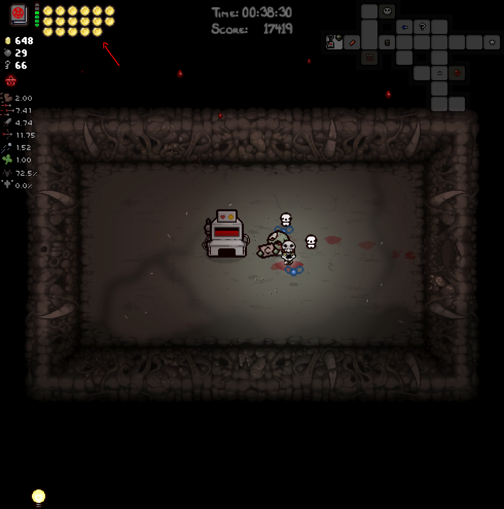 | La loi c'est moi    Inscrit: 07/04/2012 19:19 Post(s): 39508 Karma: 20048 | Je viens de faire une run avec tainted Keeper ... J'en pleure de joie! Deep Pocket + Greed gullet + Humbling bundle \o/ Résultat, quasi tous les monstres dropaient 2 pièces et j'avais constamment un TAS de coeurs! Je comprends même pas comment c'est possible ................ j'ai l'impression que c'est complètement bugué.
