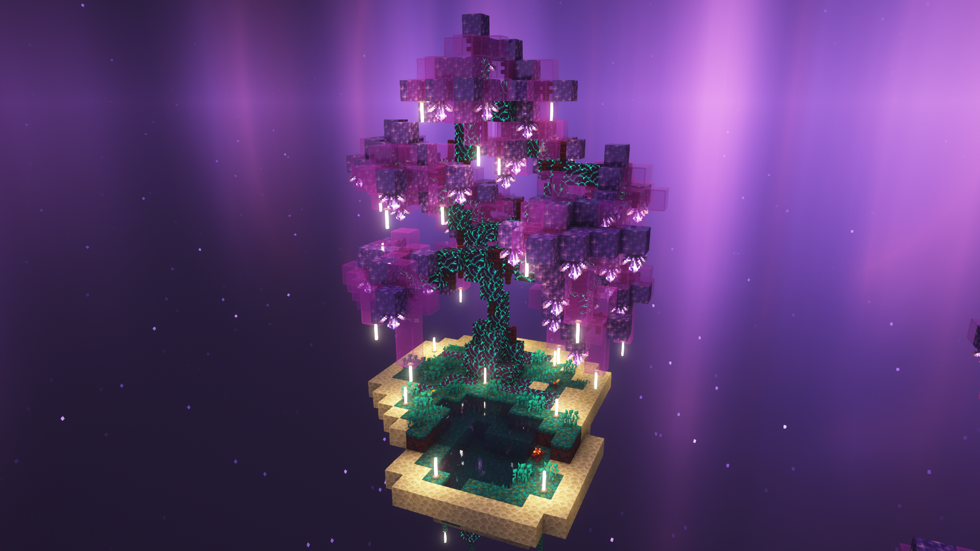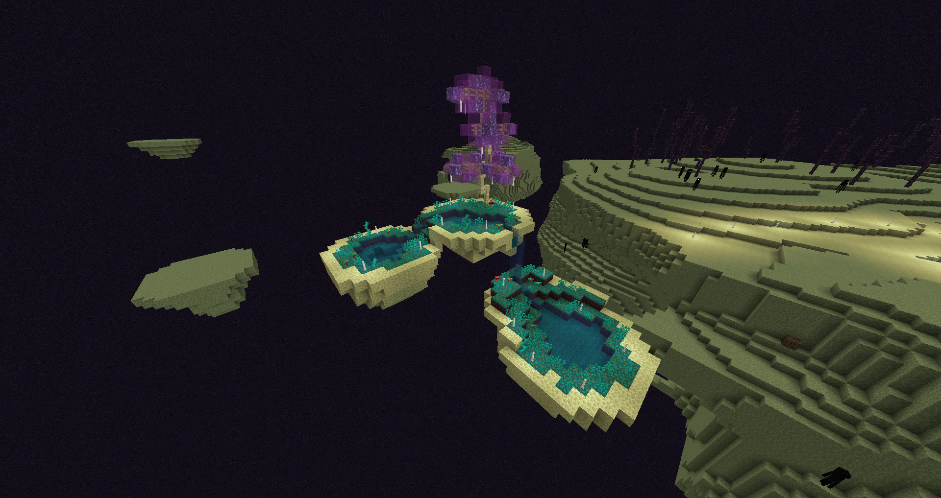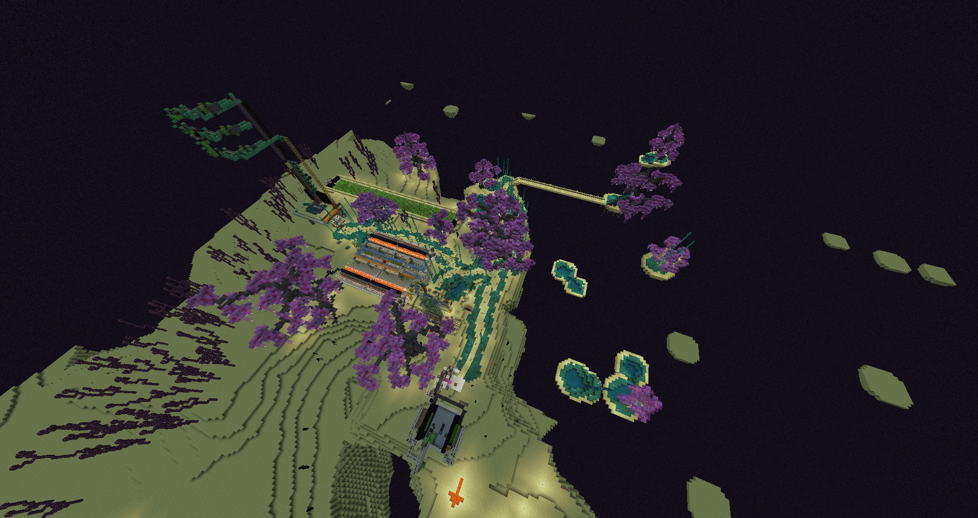 C'est pas l'île principale (puisque si on respawn le dragon il va tout péter) mais la première île quand on passe les portails, je regroupe des fermes dans ce coin. Pour le moment y'a la ferme à bone meal, kelp, canne à sucre et Warped trees, mais y'a celle pour les bouteilles de miel/ honey comb et Crimson trees de prévu pour le moment. Vue aérienne de l'île ![]() Les mini-îles autour (WIP) ![]() Gro n'arbre ![]() Et les chemins sur l'île ![]() Version shaders ![]()